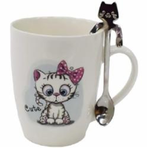 - Модель: Чашка с ложкой Ardesto Cute 320 мл фарфор белая AR3040BS