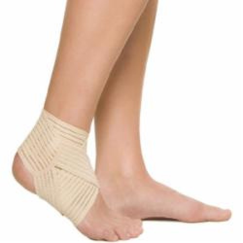 | Свойства: | бандаж на голеностоп накладывается в форме восьмерки и надежно фиксируется; может применяться как для лечения, так и для профилактики травм; достаточно комфортно носится в свободной обуви; в лечебных целях бандаж показан при растяжении связок или в случае легкой нестабильности голеностопного сустава; создавая дозированную компрессию, бандаж способствует уменьшению отека и, как следствие, болевых ощущений |