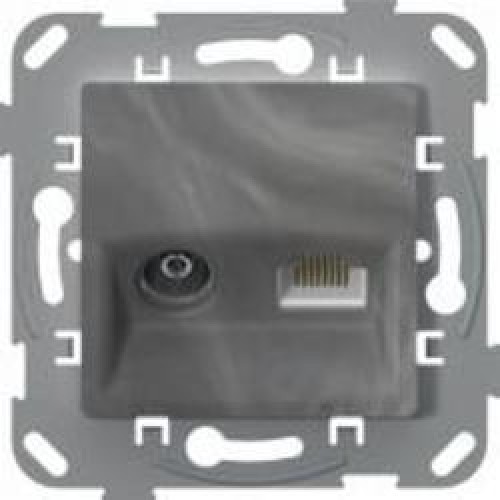 Розетка TV+RJ45 оконечная двойная Plank Electrotechnic Classic/Nordic антимикробная базальт PLK0910731