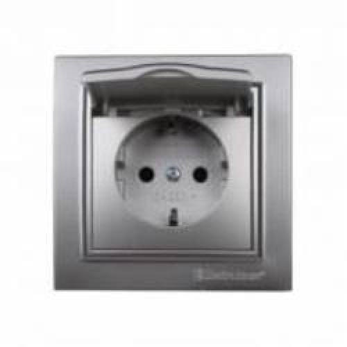 Розетка с заземлением ElectroHоuse Enzo без шторок с крышкой серебряный камень EH-2116-ST