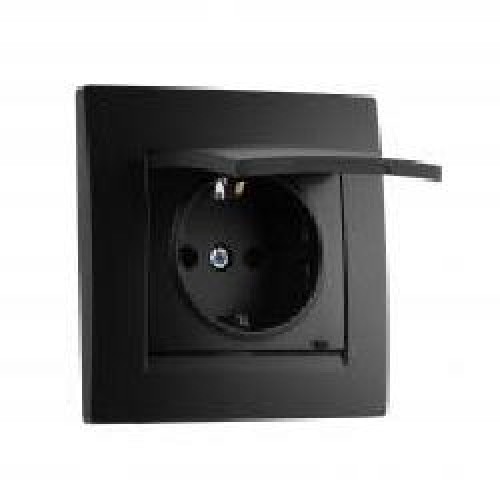 Розетка с заземлением UP! (Underprice) One Plus с крышкой антрацит 706-4242-123B