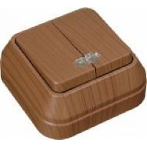 Выключатель двухклавишный Makel IP44 с подсветкой орех 45423