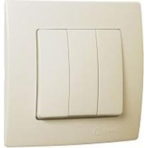 Выключатель трехклавишный Makel Lillium Natural Kare без подсветки кремовый 32010091