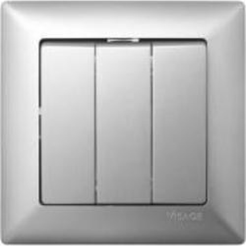 Выключатель трехклавишный Gunsan Moderna без подсветки серебряный MD 29 15 160