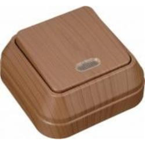 Выключатель проходной одноклавишный Makel IP44 с подсветкой орех 45425