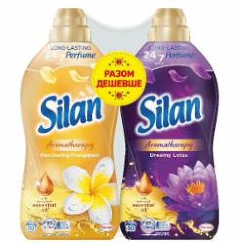 • Кондиционер-ополаскиватель Silan Ароматерапия Сказочный лотос+Увлекательный франджипани 1,1 л
