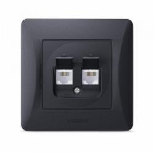 Розетка компьютерная + телефонная двойная Videx Binera CAT6+CAT3 IP20 черный графит VF-BNSK2PC6TF3-BG